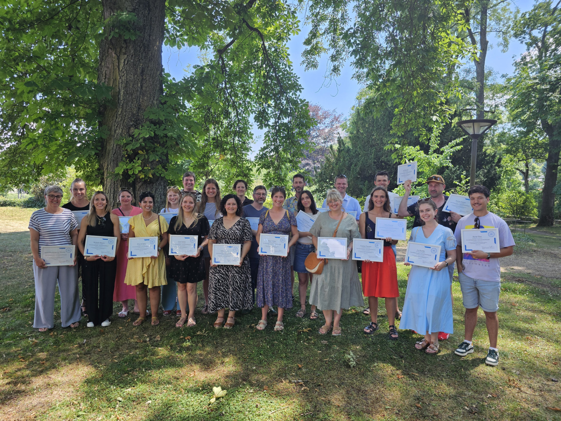 Den 1. Juli hu Mataarbechter.innen aus der Grondschoul Lëntgen an aus dem CEJHP déi am Schouljoer 2024-2025 d’ETEP Ausbildung am CDSE erfollegräich ofgeschloss hunn hiren Certificat am Park zu Mënsbech iwwerreecht kritt.